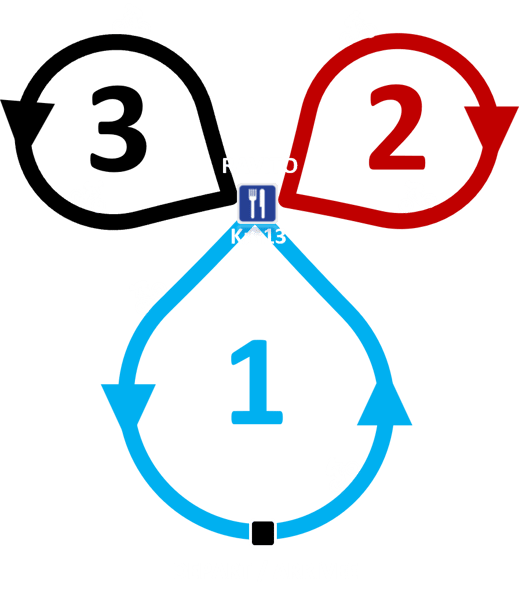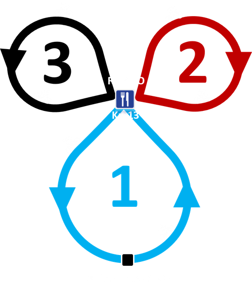 1+2+3 = 50 km = on ajoute la boucle additionnelle du chemin de crête (pour prolonger encore le plaisir), puis retour après un 3ème passage au ravitaillement.