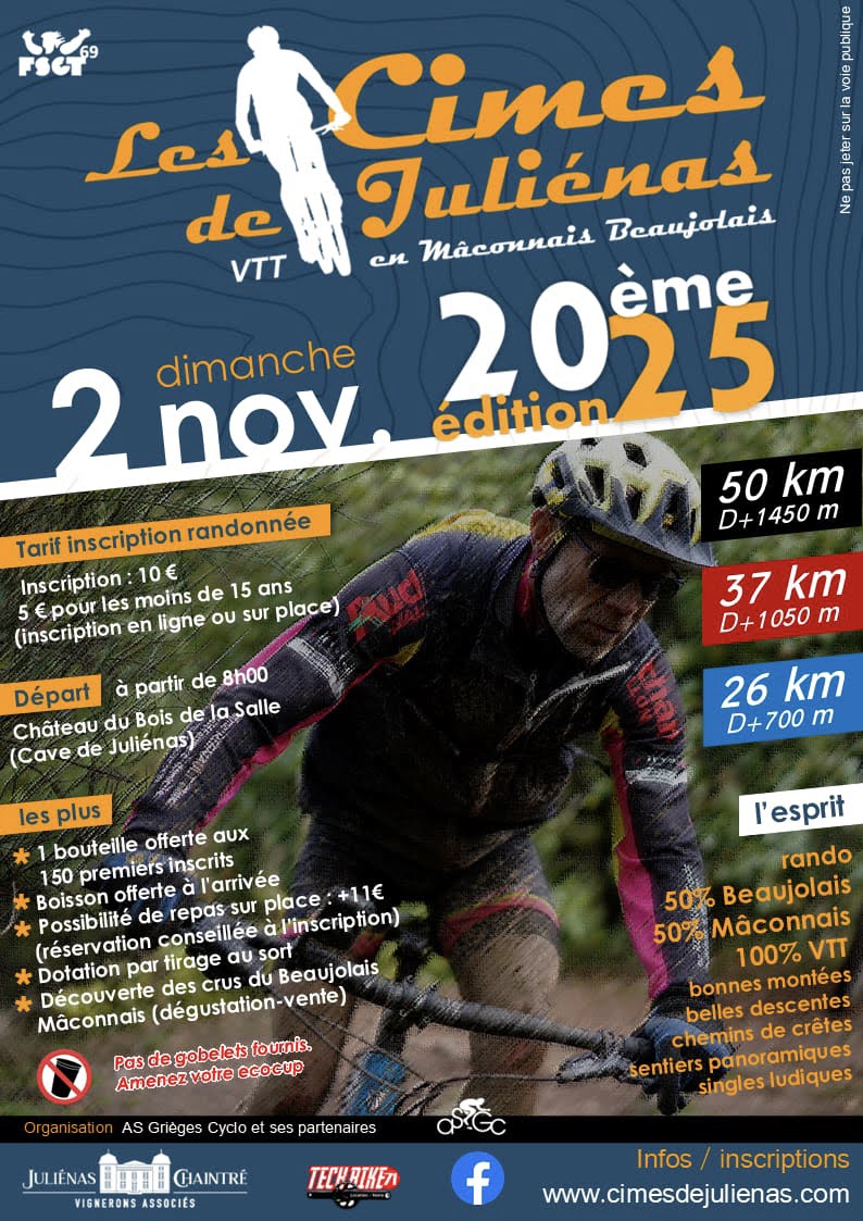 Bravo pour le tracé du 44km. Un vrai best of des sentiers au départ de Juliénas. Ravitos au top (super la soupe !!), et organisation très sympa. Pour couronner le tout, une météo agréable, et des paysages magnifiques ! -> une rando qu'on n'oublie pas !